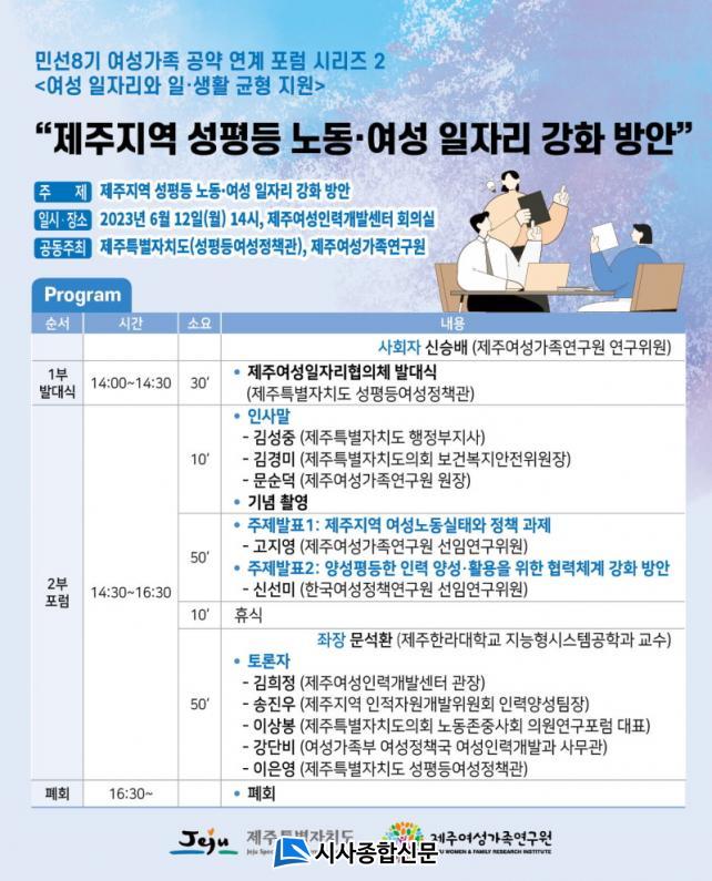 | Á¦ÁÖ¿©¼º°¡Á·¿¬±¸¿ø, ¿©¼º ÀÏÀÚ¸®Á¤Ã¥ °È¹æ¾È ¸ð»öÀ» À§ÇÑ °øµ¿Æ÷·³ °³ÃÖ "Á¦ÁÖÁö¿ª ¼ºÆòµî ³ëµ¿¡¤¿©¼º ÀÏÀÚ¸® °È¹æ¾È" |
