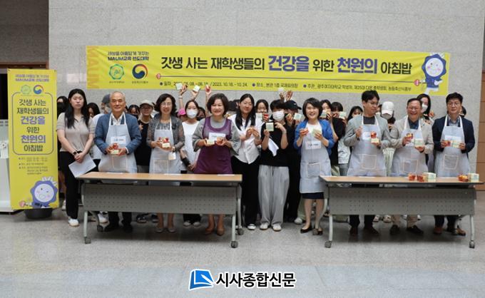 ±¤ÁÖ¿©ÀÚ´ëÇб³ ¡®Ãµ¿øÀÇ ¾ÆÄ§¹ä¡¯ Çà»ç´Â ½Ã°£ ºÎÁ· µîÀ¸·Î ¾ÆÄ§½Ä»ç¸¦ °Å¸£´Â ÀçÇлýµéÀ» ´ë»óÀ¸·Î ¾ÆÄ§ °£Æí½ÄÀ» Á¦°øÇÔÀ¸·Î½á ¾ÆÄ§¹ä ¸Ô´Â ¹®È¸¦ È®»êÇÏ°í °Ç°ÇÑ ½Ä½À°üÀ» Çü¼ºÇÏ¸ç ±¹³» ½Ò ¼Òºñ¸¦ Àå·ÁÇϰíÀÚ ³ó¸²Ãà»ê½ÄǰºÎ ÈÄ¿øÀ¸·Î ÁøÇàµÇ°í ÀÖ´Ù.