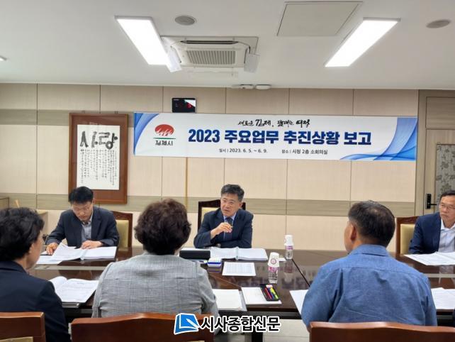 ÇÑÆí, Á¤¼ºÁÖ ±èÁ¦½ÃÀåÀº ¡°»õ·Î¿î ±èÁ¦¸¦ ¸¸µé±â À§ÇÑ Á÷¿øµéÀÇ ´ã´ëÇÑ µµÀüÀÌ ½ÃÁ¤ Àü ºÐ¾ß¿¡ ½Å¼±ÇÑ º¯ÈÀÇ ¹Ù¶÷À» ÀÏÀ¸Å°°í, ±èÁ¦½ÃÀÇ ¹Ì·¡¸¦ À§ÇÑ ¿ªÁ¡ »ç¾÷µéÀÌ °èȹ´ë·Î ÁøÇàµÉ ¼ö ÀÖµµ·Ï »ç¾÷ ÃßÁø¿¡ ÃÑ·ÂÀ» ´ÙÇØ Áֽñ⠹ٶõ´Ù.¡±¶ó°í ¸»Çß´Ù.