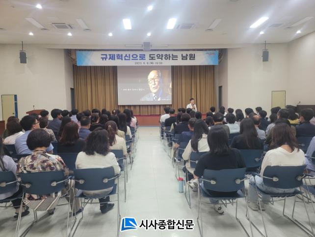 [½Ã»çÁ¾ÇսŹ® = ¿À½ÂÅà ±âÀÚ] ³²¿ø½Ã´Â ±ÔÁ¦Çõ½Å¿¡ ´ëÇÑ °øÁ÷ÀÚÀÇ °ü½É°ú ÀÌÇØµµ¸¦ ³ôÀ̰í, ¾÷¹« ¿ª·® °È¸¦ À§ÇØ 6¿ù 8ÀÏ Àü Á÷¿øÀ» ´ë»óÀ¸·Î ¡®2023³â ±ÔÁ¦°³Çõ ±³À°¡¯À» ½Ç½ÃÇß´Ù°í ¹àÇû´Ù.