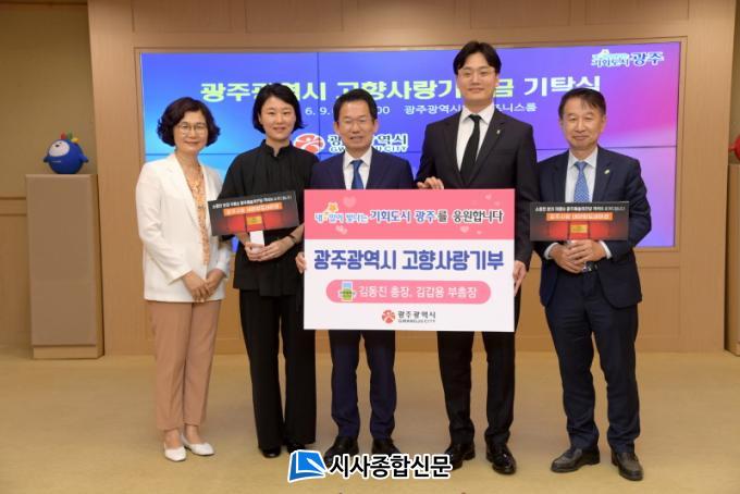 ±¤ÁÖ±¤¿ª½Ã(½ÃÀå °±âÁ¤)´Â À̳¯ ½Ãû ºñÁî´Ï½º·ë¿¡¼ ±èµ¿Áø ±¤ÁÖ´ëÇб³ ÃÑÀå°ú ´©³ª ±èÀ¯Áø ¾¾°¡ °íÇâ»ç¶û±âºÎ±ÝÀ¸·Î 100¸¸¿øÀ» ±âŹÇß´Ù°í ¹àÇû´Ù.