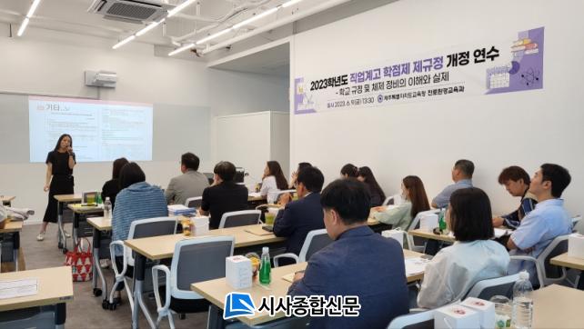 [½Ã»çÁ¾ÇսŹ® = °í¼º¹Î ±âÀÚ] Á¦ÁÖÆ¯º°ÀÚÄ¡µµ±³À°Ã»(±³À°°¨ ±è±¤¼ö)Àº¡®2023Çг⵵ Á÷¾÷°è°í ÇÐÁ¡Á¦ Á¦±ÔÁ¤ °³Á¤ Á¤ºñ¸¦ À§ÇÑ ±³¿ø ¿¬¼ö¡¯¸¦ 6¿ù 9ÀÏ(±Ý) µµ±³À°Ã» ¿À¶óû»ç 3Ãþ Ãë¾÷Áö¿ø¼¾ÅÍ¿¡¼ ¿î¿µÇß´Ù.