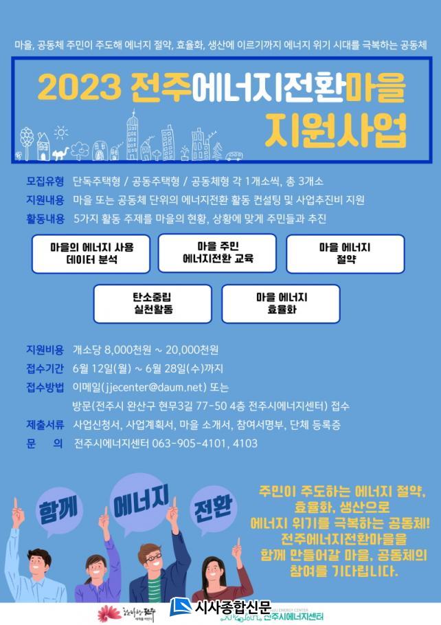 ÀüÁֽÿ¡³ÊÁö¼¾ÅÍ(ÀÌÇÏ ¼¾ÅÍ)´Â ±âÈÄ À§±â¿¡ ´ëÀÀÇϱâ À§ÇØ ¸¶À» ±¸¼º¿øµéÀÌ ¿¡³ÊÁöÀüȯ¿¡ ´ëÇÑ ÀÌÇØ¸¦ ¹ÙÅÁÀ¸·Î ¿¡³ÊÁöÀý¾à°ú »ý»ê µîÀ» ±âȹÇÏ°í ½ÇõÇÏ´Â ÁֹΠÁÖµµÀÇ ¿¡³ÊÁöÀüȯ °øµ¿Ã¼ÀÎ ¡®ÀüÁÖ¿¡³ÊÁöÀüȯ¸¶À»¡¯ ½ÅûÀ» ¿À´Â 23ÀϱîÁö Á¢¼öÇÑ´Ù.