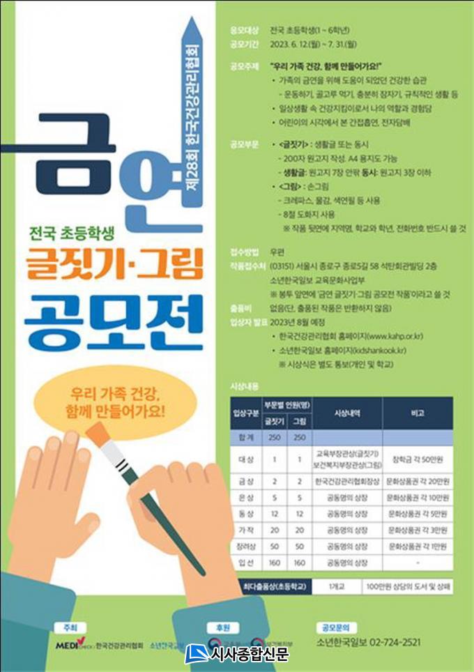 | Çѱ¹°Ç°°ü¸®Çùȸ, Á¦28ȸ ÃʵîÇлý ±Ý¿¬ ±ÛÁþ±â¡¤±×¸² °ø¸ðÀü °³ÃÖ ¼Ò³âÇѱ¹ÀϺ¸¿Í °øµ¿ÁÖÃÖ, ¿À´Â 7¿ù 31ÀϱîÁö ¿ìÆí Á¢¼ö