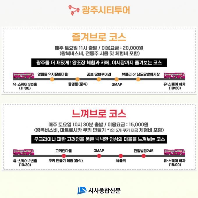ÇÑÆí Á¦14ȸ ±¤ÁÖºñ¿£³¯·¹ °³ÃÖ¿Í ¹ß¸ÂÃç ¿îÇà ÁßÀÎ ½ÃƼÅõ¾î ¹ö½º(¼øÈ¯Çü)´Â 7¿ù 9ÀϱîÁö ¸ÅÁÖ È¿äÀϺÎÅÍ ÀÏ¿äÀϱîÁö 1ÀÏ 9ȸ 1½Ã°£ ¹èÂ÷°£°ÝÀ¸·Î ¿îÇàµÈ´Ù. ¼ÛÁ¤¿ªÀ» ±âÁ¡À¸·Î À¯½ºÄù¾îÅ͹̳Î, »ó¹«Áö±¸ µî ÁÖ¿ä °ÅÁ¡Áö¸¦ ºñ·ÔÇØ ºñ¿£³¯·¹Àü½Ã°ü, ÆÄºô¸®¿Â Àü½Ã°ü(¾ç¸²µ¿ ÀÏ´ë)À» °æÀ¯ÇÏ´Â ÄÚ½º·Î ±¸¼ºµÅ ÀÖ´Ù.