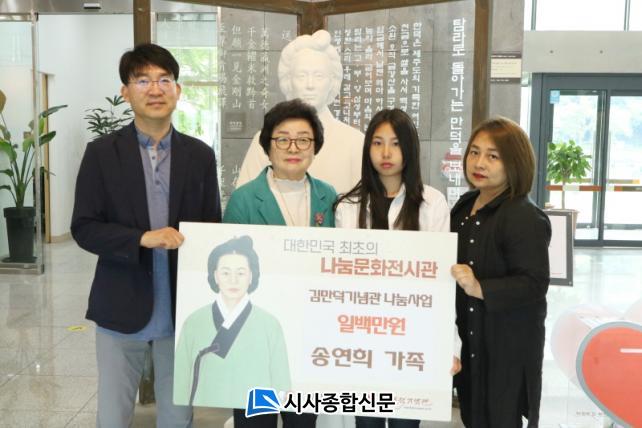 [½Ã»çÁ¾ÇսŹ® = °í¼º¹Î ±âÀÚ] ½Å¼º¿©Áß 3Çг⠼ۿ¬ÈñÇлýÀÌ ±è¸¸´ö±â³ä°ü¿¡ »ç¶ûÀÇ ½Ò ±âºÎ±Ý 100¸¸¿øÀ» ±âŹÇß´Ù.ÀÌ ³¯ ±âŹÇÑ ±âºÎ±ÝÀº ¼Û¿¬ÈñÇлýÀÌ ¸ðÀº ¿ëµ·°ú °¡Á·ÀÌ ÇÔ²² ¶æÀ» ¸ð¾Æ ¸¶·ÃµÇ¾ú´Ù.