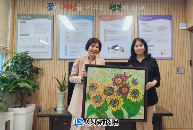 [½Ã»çÁ¾ÇսŹ® = °í¼º¹Î ±âÀÚ] Á¦ÁÖ¿µÁöÇб³(±³Àå ¾çº¹¸¸)´Â 6¿ù 14ÀÏ(¼ö) 14½Ã º»±³ ±³Àå½Ç¿¡¼ ¹®Èñ ÀÛ°¡ÀÇ ÇØ¹Ù¶ó±â ±×¸² ±âÁõ½ÄÀ» °¡Á³´Ù.