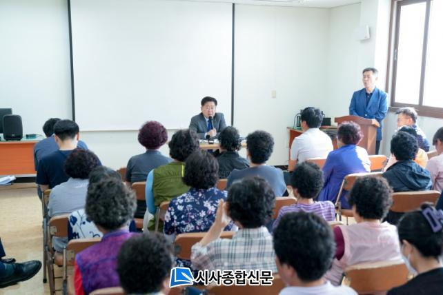 ¿À¿µÈÆ Áö»ç´Â À̳¯ ¿ÀÈÄ 4½Ã ¿ùÁ¤¸® ¾îÃ̰èȸ°ü¿¡¼ µ¿ºÎÇϼöó¸®Àå Áõ¼³À» µÑ·¯½Ñ °¥µîÀ» ÁßÀçÇϰí, ¸¶À»È¸¿Í ÇØ³àȸÀÇ ÀǰßÀ» ¼ö·ÅÇϱâ À§ÇÑ °£´ãȸ ÀÚ¸®¸¦ ¸¶·ÃÇß´Ù. À̳¯ °£´ãȸ¿¡´Â ¿À¿µÈÆ Áö»ç, ±èâÇö ¿ùÁ¤¸®Àå, ±è°æº¹ ¾îÃ̰èÀå, ±è¿µ¼÷ ÇØ³àȸÀåÀ» ºñ·ÔÇØ ¿ùÁ¤¸® ÇØ³à 40¿©¸íÀÌ Âü¼®Çß´Ù.