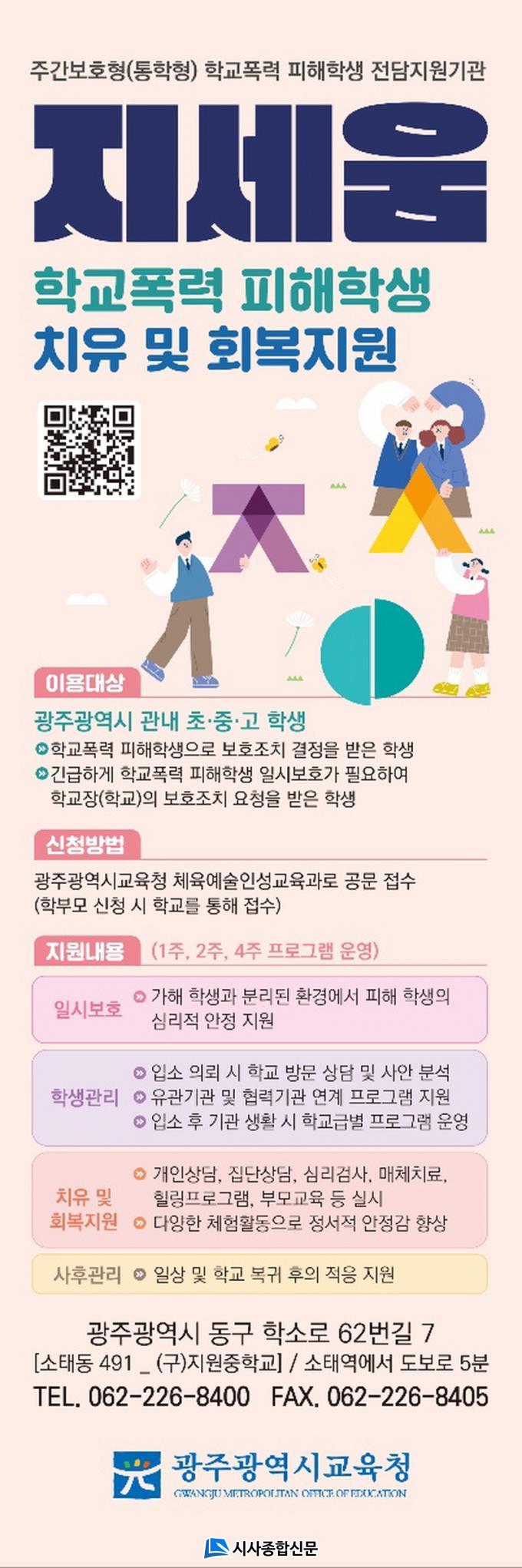 ±³À° ´ë»óÀº Çб³Æø·Â ÇÇÇØ Àڳฦ µÐ ÃÊ‧Áß‧°í Çкθð, Çб³Æø·Â ¿¹¹æ°ú ´ëó¿¡ °ü½ÉÀÌ Àְųª, ÀÚ³à ¾çÀ°¿¡ ÄÚĪÀÌ ÇÊ¿äÇÑ ÇкθðÀÌ´Ù. ½Åû ¹æ¹ýÀº Çб³Æø·ÂÀü´ãÁö¿ø±â°ü ¡®Áö¼¼¿ò¡¯¿¡ ÀüÈ(062-226-8400~3)ÇØ¼ ½ÅûÇÏ¸é µÈ´Ù.