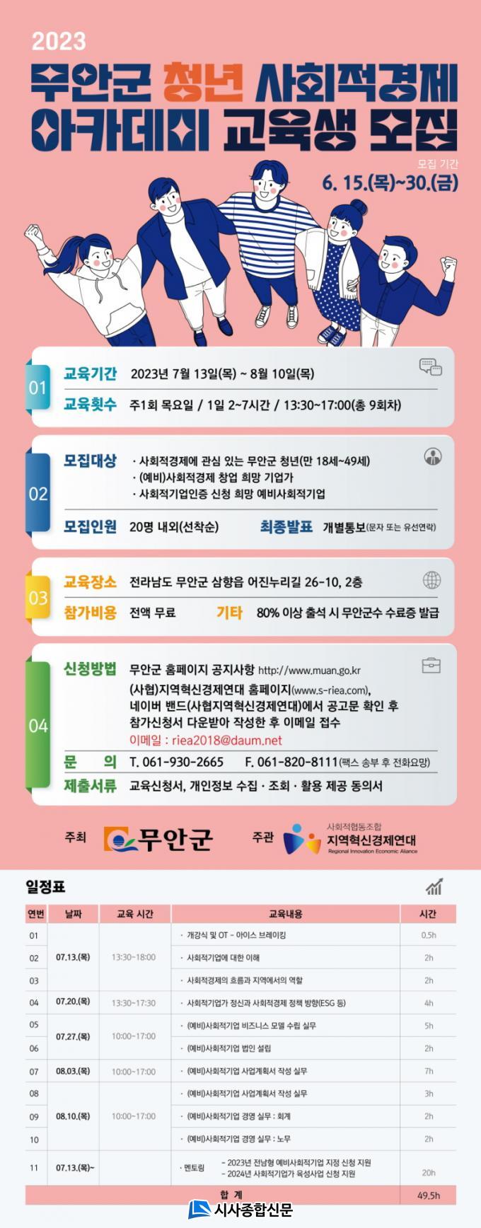 À̹ø ±³À°Àº ¿À´Â 7¿ù 13ÀϺÎÅÍ 9¿ù 7ÀϱîÁö ½Ç½ÃµÇ¸ç, »çȸÀû °æÁ¦¿¡ °ü½É Àִ û³â ¹× ¿¹ºñâ¾÷ÀÚ 20¸íÀ» ´ë»óÀ¸·Î »çȸÀû°æÁ¦ ±â¾÷ ¼³¸³¿ä°Ç, »çȸÀû±â¾÷ â¾÷ ´Ü°èº° ÀÌÇà¾È, ´ã´ç Áöµµ(¸àÅ丵) Áö¿ø µî ´Ù¾çÇÑ ±³À° ÇÁ·Î±×·¥ÀÌ ÁøÇàµÈ´Ù.