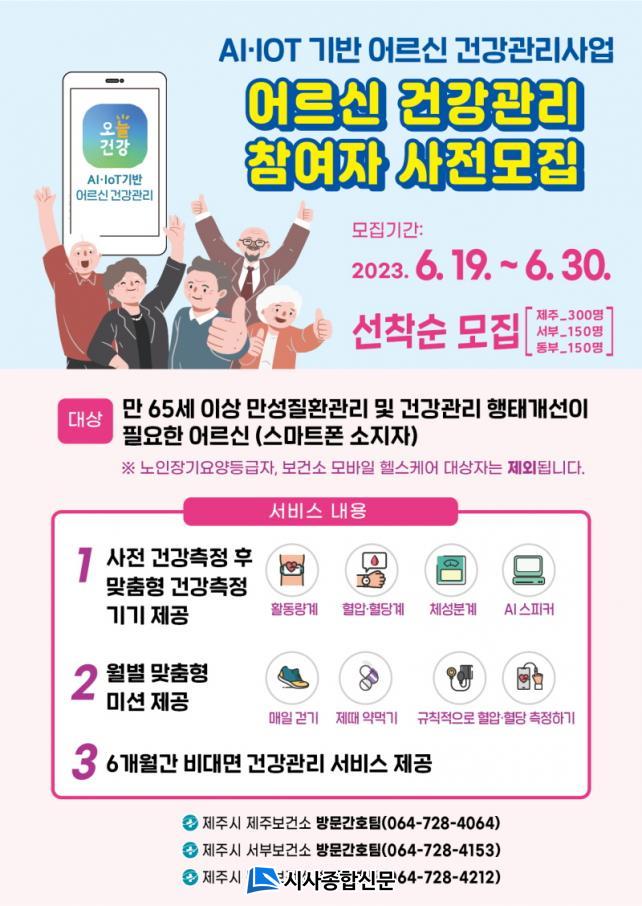 ÀÌ »ç¾÷Àº Äڷγª19 ÀÌÈÄ ´ëµÎµÈ ºñ´ë¸é °Ç°°ü¸®ÀÇ Çʿ伺°ú È¿À²ÀûÀÎ °Ç°°ü¸®¸¦ À§ÇØ 2020³âºÎÅÍ º¸°Çº¹ÁöºÎ¿¡¼ È®´ëÇØ¿À°í ÀÖ´Â »ç¾÷ÀÌ´Ù. ÀÌ¿¡ Á¦Áֽõµ ¿ÃÇØ °¢ º¸°Ç¼Ò¿¡¼ Âü¿©ÀÚ 600¸í(Á¦ÁÖº¸°Ç¼Ò 300¸í, ¼ºÎ‧µ¿ºÎº¸°Ç¼Ò °¢ 150¸í)À» ¼±Âø¼øÀ¸·Î ¸ðÁýÇÏ¿© 7¿ùºÎÅÍ º»°Ý ¿î¿µÇÒ ¿¹Á¤ÀÌ´Ù.