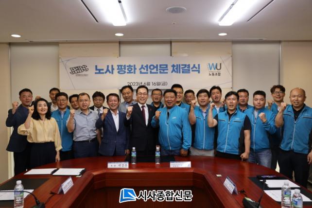 ƯÈ÷ °ø»ç ³ë»ç´Â ´ëÈ¿Í Å¸ÇùÀ» ÅëÇØ ÀÚÀ²ÀûÀ¸·Î ¹®Á¦¸¦ ÇØ°áÇÏ´Â ÇÑÆí, Áö¼ÓÇØ ¹«ºÐ±Ô ¹× ¹«ÀïÀÇ »ç¾÷Àå ±¸Ãà¿¡ ¾ÕÀå¼±â·Î °áÀÇÇß´Ù. À̹ø ¼±¾ð¹®Àº Áö³ 2021³â ³ë»ç »ó»ý ¼±¾ð¿¡ ÀÌ¾î °ø»ç ³ëÁ¶ ⸳ ÀÌÈÄ ÁøÇàµÈ µÎ ¹øÂ° ¼±¾ðÀÌ´Ù.