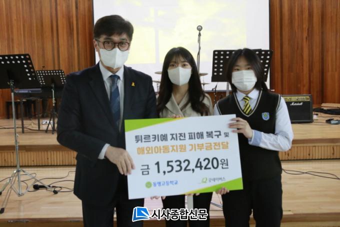 [½Ã»çÁ¾ÇսŹ® = ¿À½ÂÅà ±âÀÚ] ±Â³×À̹ö½º È£³²º»ºÎ(º»ºÎÀå Á¤¿ëÁø)´Â µ¿¸í°íµîÇб³(±³Àå ÀÌ¸í¼®)·ÎºÎÅÍ Æ¢¸£Å°¿¹ ¹× ½Ã¸®¾Æ ´ëÁöÁøÀ¸·Î ÇÇÇØ¸¦ ÀÔÀº ÀÌÀç¹ÎÀ» À§ÇØ ÈÄ¿ø±ÝÀ» Àü´Þ¹Þ¾Ò´Ù°í 16ÀÏ ¹àÇû´Ù. µ¿¸í°íµîÇб³¿¡¼ ÁøÇàµÈ À̹ø Àü´Þ½Ä¿¡¼´Â µ¿¸í°íµîÇб³ ÀÌ¸í¼® ±³Àå°ú Çлý Àü¿øÀÌ Âü¼®Çß´Ù.