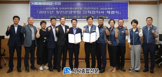 À̳¯ Çù¾à½Ä¿¡´Â °Áø¿ø ±º¼ö¿Í Àü°ø³ë °Áø±ºÁöºÎ ±èÀç¸í ÁöºÎÀåÀ» ºñ·ÔÇØ, ¾çÃø ±³¼·À§¿ø 12¸íÀÌ Âü¼®Çß°í, ¡ã±Ù¹«È¯°æ °³¼± ¡ã°ø¹«¿ø ó¿ì Çâ»ó ¡ãÁ÷¿ø°£ ¼ÒÅë °È¸¦ °ñÀÚ·Î ÃÖÁ¾ ÇÕÀǸ¦ µµÃâÇß´Ù. À̹ø Çù¾àÀº Áö³ 2018³â ´ÜüÇù¾à ü°á(2019. 11. 6.) ÀÌÈÄ 3³â ¸¸¿¡ ÇÕÀÇÇÑ °ÍÀ¸·Î, ¾ÕÀ¸·Î 3³â°£ È¿·ÂÀ» À¯ÁöÇÑ´Ù.