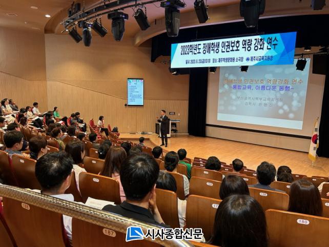 [½Ã»çÁ¾ÇսŹ® = °í¼º¹Î ±âÀÚ] Á¦Áֽñ³À°Áö¿øÃ»(±³À°Àå ±èÂùÈ£) Ư¼ö±³À°Áö¿ø¼¾ÅÍ´Â 6¿ù 23ÀÏ(±Ý) Á¦ÁÖÇлý¹®È¿ø ¼Ò±ØÀå¿¡¼ Á¦Áֽà °ü³» À¯¡¤ÃÊ¡¤Áßµî °ü¸®ÀÚ ¹× ±³»ç¸¦ ´ë»óÀ¸·Î¡®Àå¾ÖÇлý ÀαǺ¸È£¸¦ À§ÇÑ ¿ª·® °È ¿¬¼ö¡¯¸¦ ½Ç½ÃÇß´Ù.