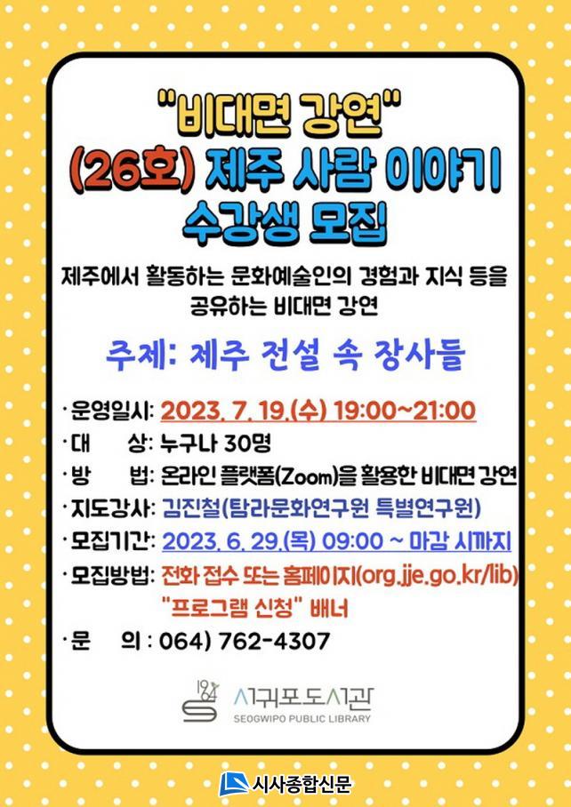 ºñ´ë¸é ¿Â¶óÀÎ(Zoom) ¹æ½ÄÀ¸·Î ÁøÇàµÇ´Â À̹ø °¿¬Àº ±èÁøÃ¶(޶ó¹®È¿¬±¸¿ø Ưº°¿¬±¸¿ø) °»ç¸¦ ¸ð½Ã°í¡®Á¦ÁÖ Àü¼³ ¼Ó Àå»çµé¡¯À̶ó´Â ÁÖÁ¦·Î ¿À´Â 7¿ù 19ÀÏ(¼ö) ¿ÀÈÄ 7~9½Ã¿¡ ¿î¿µµÈ´Ù.