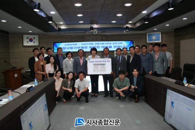 [½Ã»çÁ¾ÇսŹ® = ¿À½ÂÅà ±âÀÚ] ¼øÃ¢±ºÀÇȸ(ÀÇÀå ½ÅÁ¤ÀÌ)´Â Àڸŵµ½ÃÀÎ ºÎ»ê±¤¿ª½Ã »ç»ó±¸ÀÇȸ(ÀÇÀå À±¼÷Èñ)¿Í °íÇâ»ç¶û±âºÎÁ¦ÀÇ ¼º°øÀûÀÎ ¾ÈÂø°ú ÀڸŰῬ µµ½ÃÀÇ ¹ßÀü ¹× ÀÀ¿øÀ» À§ÇØ °íÇâ»ç¶û±âºÎ±ÝÀ» »óÈ£ ±âŹÇß´Ù.