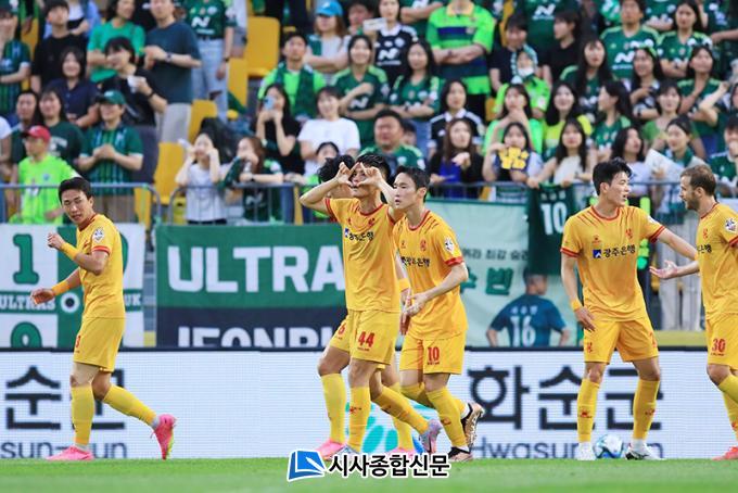±¤ÁÖ´Â Áö³ 24ÀÏ ±¤ÁÖÃ౸Àü¿ë±¸Àå¿¡¼ ¿¸° ÀüºÏÇö´ë¿ÍÀÇ È¨°æ±â¿¡¼ źźÇÑ ¼öºñ¿Í ²ö²öÇÑ Á¶Á÷·Â, ¸·°ÇÑ È·ÂÀ» ¼±º¸À̸ç 2-0 ½Â¸®¸¦ °Åµ×´Ù. ±¤ÁÖ´Â Áö³ 2017³â 4¿ù 30ÀÏ ÀÌÈÄ 2,247Àϸ¸¿¡ ÀüºÏÀü ½Â¸®¸¦ °ÅµÎ¸ç ½ÂÁ¡ 28Á¡À¸·Î ¸®±× 5À§¿¡ ¿Ã¶ó¼¹´Ù.