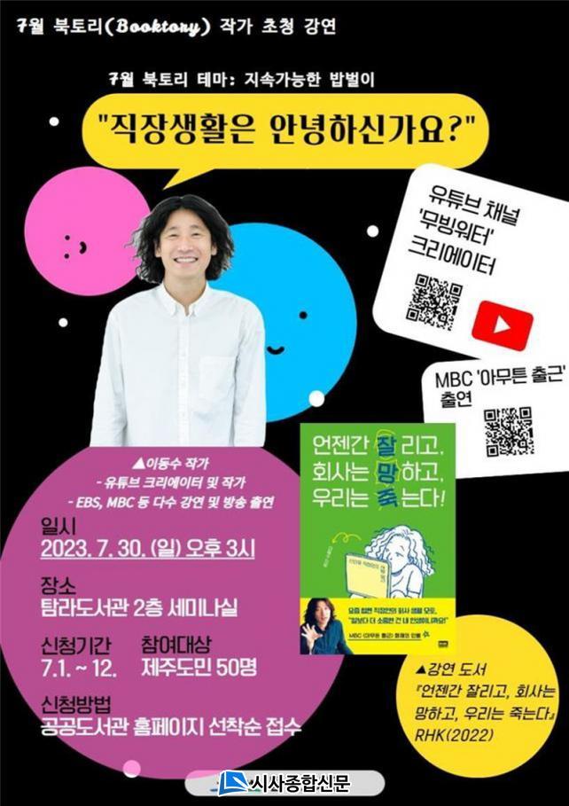 [½Ã»çÁ¾ÇսŹ® = °í¼º¹Î ±âÀÚ] Á¦Áֽà Ž¶óµµ¼°üÀº ¿À´Â 7¿ù 30ÀÏ(ÀÏ) ¿ÀÈÄ 3½Ã À̵¿¼öÀÇ ÀÛ°¡ÀÇ °¿¬ ¡®Á÷Àå»ýȰÀº ¾È³çÇϽŰ¡¿ä?¡¯¸¦ °³ÃÖÇÑ´Ù
