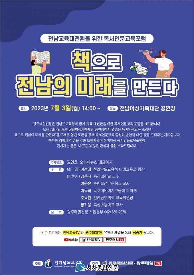 Àü¶ó³²µµ±³À°Ã»(±³À°°¨ ±è´ëÁß)Àº ¿À´Â 7¿ù 3ÀÏ(¿ù) ¿ÀÈÄ 2½Ã Àü³²¿©¼º°¡Á·Àç´Ü °ø¿¬Àå¿¡¼ ¡®Ã¥À¸·Î Àü³²ÀÇ ¹Ì·¡¸¦ ¸¸µç´Ù¡¯¸¦ ÁÖÁ¦·Î µ¶¼Àι®±³À°Æ÷·³À» °³ÃÖÇÑ´Ù°í 28ÀÏ(¼ö) ¹àÇû´Ù.
