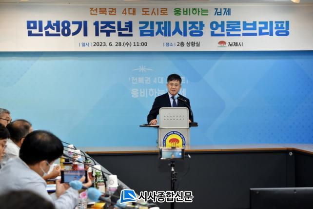 Á¤¼ºÁÖ ±èÁ¦½ÃÀåÀº ¹Î¼±8±â 1Áֳ⿡ ÁîÀ½ÇÏ¿© 6. 28ÀÏ(¼ö) ÃâÀÔ±âÀÚ´Ü °£´ãȸ¸¦ °³ÃÖÇÏ°í ½ÃÁ¤ÀÇ Áֿ伺°ú¿Í »õ·Î¿î ±èÁ¦ ¼º°ø½Ã´ë¸¦ À̲ø ºñÀüµéÀ» ¹ßÇ¥Çß´Ù.