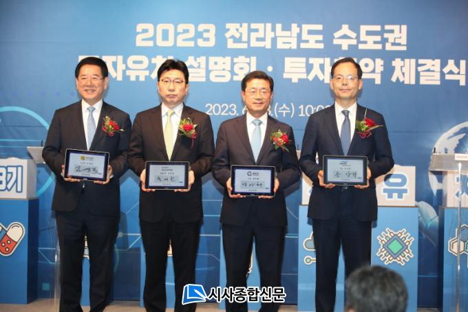 À̳¯ ¼³¸íȸ¿¡´Â ±è¿µ·Ï Àü³²Áö»ç¿Í Á¤ÀÎÈ ±¤¾ç½ÃÀåÀ» ºñ·ÔÇÑ Á¤±â¸í ¿©¼ö½ÃÀå, °Á¾¸¸ ¿µ±¤±º¼ö, ½Å¿ìö ¿Ïµµ±º¼ö, ¼öµµ±Ç ±â¾÷¡¤Çùȸ ´ëÇ¥ 150¿© ¸íÀÌ Âü¼®ÇÑ °¡¿îµ¥ 5°³ ±â¾÷°ú 2Á¶5õ¾ï¿ø ±Ô¸ð ÅõÀÚÇù¾àÀ» ü°áÇß´Ù. À̳¯ Çà»ç´Â ÅõÀÚÇù¾à°ú ÆÛÆ÷¸Õ½º, ÅõÀÚ¼³¸íȸ ¼øÀ¸·Î ÁøÇàµÆ´Ù.