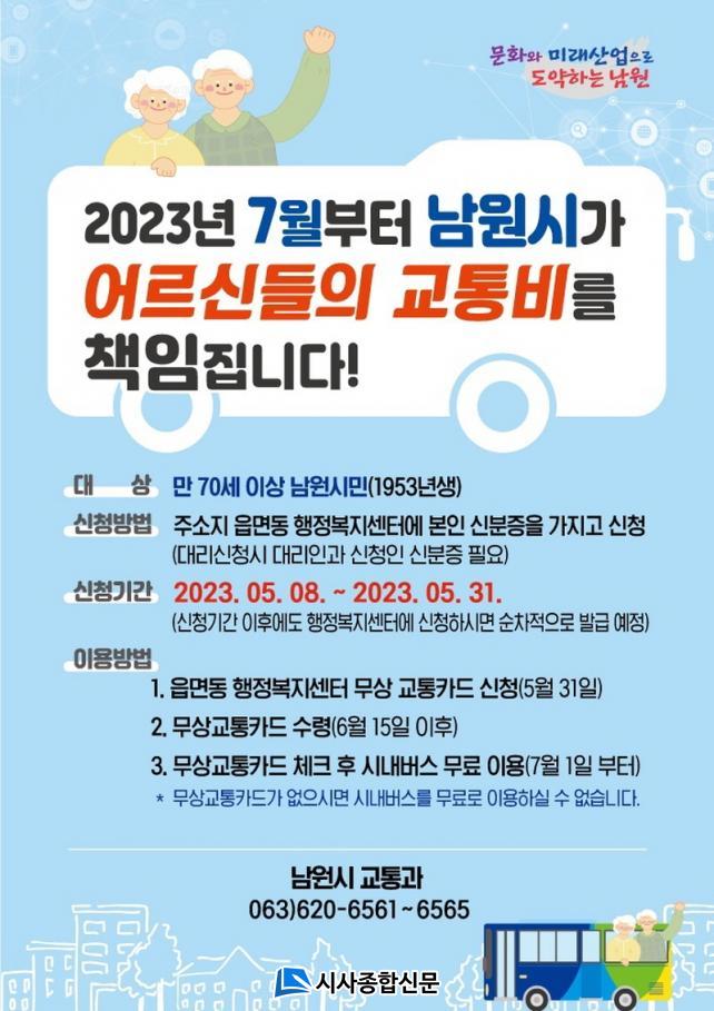 ³²¿ø½Ã °ü°èÀÚ´Â ¡°¾ÆÁ÷ ¹«»ó±³ÅëÄ«µå¸¦ ½ÅûÇÏÁö ¸øÇÑ ¸¸ 70¼¼ ÀÌ»ó ³²¿ø½Ã¹ÎÀº ÁÖ¼ÒÁö °üÇÒ À¾¸éµ¿ ÇàÁ¤º¹Áö¼¾ÅÍ¿¡ ½ÅºÐÁõÀ» ÁöÂüÇÏ°í ¹æ¹®ÇØ ½ÅûÇϸé Áï½Ã ¹«»ó±³ÅëÄ«µå¸¦ ¹ß±Þ ¹ÞÀ» ¼ö ÀÖ´Ù¡±°í ÀüÇß´Ù.