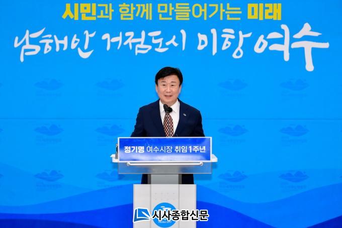 ¿©¼ö½Ã¿¡ µû¸£¸é, Á¤±â¸í ¿©¼ö½ÃÀåÀº 29ÀÏ ½Ãû ȸÀǽǿ¡¼ ¹Î¼±8±â ÃëÀÓ 1ÁÖ³â Áֿ伺°ú¿Í ÇâÈÄ ½ÃÁ¤¿î¿µ ¹æÇâÀ» ¼³¸íÇÏ´Â ±âÀÚȸ°ßÀ» °¡Á³´Ù. Á¤ ½ÃÀåÀº À̳¯ 5°³ ºÐ¾ß(Á¤ÁÖ¿©°Ç, »ê¾÷°æÁ¦, ±³À°º¸°Çº¹Áö, ¹®È°ü±¤, ±âÈÄȯ°æ)ÀÇ ¼º°ú¿Í ÇâÈÄ ½ÃÁ¤¿î¿µ 10´ë ÇÙ½ÉÁ¤Ã¥À» ¹ßÇ¥Çß´Ù.