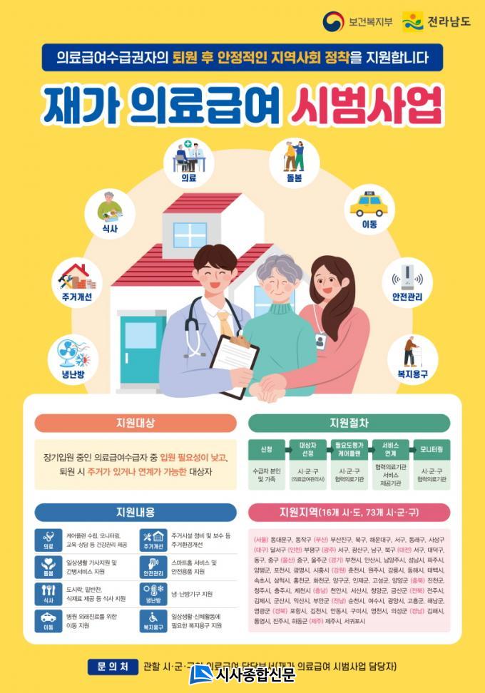 Àç°¡ ÀÇ·á±Þ¿© ½Ã¹ü»ç¾÷Àº Àå±â ÀÔ¿ø Çʿ伺ÀÌ ³·À½¿¡µµ ÇÑ ´Þ ÀÌ»ó ÀÔ¿ø ÁßÀÎ ÀÇ·á±Þ¿© ¼ö±ÞÀÚ¸¦ ´ë»óÀ¸·Î Åð¿ø ÈÄ Áý¿¡¼ ÀǷᡤµ¹º½¡¤½Ä»ç¡¤À̵¿ ¼ºñ½º µîÀ» ÅëÇÕ Á¦°øÇØ Áö¿ª»çȸ º¹±Í¡¤Á¤ÂøÀ» Áö¿øÇÏ´Â »ç¾÷ÀÌ´Ù.