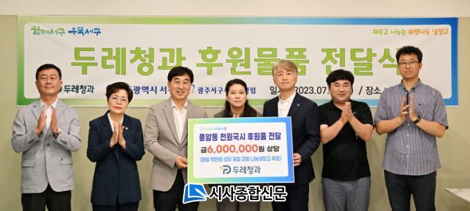 [½Ã»çÁ¾ÇսŹ® = ¿À½ÂÅà ±âÀÚ] ±èÀ̰ ¼±¸Ã»ÀåÀº 3ÀÏ ¿ÀÈÄ µÎ·¹Ã»°ú(´ëÇ¥ÀÌ»ç ÇѼö¿µ)·ÎºÎÅÍ Ç³¾Ï õ¿ø±¹½Ã ³ª´®³ÃÀå°í¸¦ ÅëÇØ °ü³» ¾î·Á¿î ÀÌ¿ôµé¿¡°Ô Àü´ÞÇÒ 600¸¸¿ø »ó´çÀÇ Á¦Ã¶°úÀÏÀ» ¹Þ°í °¨»çÀÇ ¸¶À½À» ÀüÇß´Ù.