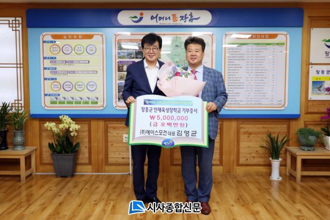[½Ã»çÁ¾ÇսŹ® = ¿À½ÂÅà ±âÀÚ] ±è¿µ±Õ ¿¡À̽º¸ð°Ç ´ëÇ¥°¡ 4ÀÏ ÀåÈﱺÀÎÀçÀ°¼ºÀåÇÐȸ¿¡ ÀåÇÐ±Ý 500¸¸¿øÀ» ±âºÎÇß´Ù.