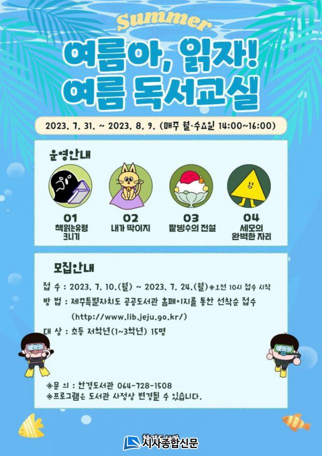 ¡¸¿©¸§¾Æ, ÀÐÀÚ! ¿©¸§ µ¶¼±³½Ç¡¹Àº ½º½º·Î¿¡ ´ëÇÏ¿© ÀÌÇØÇÏ°í ¼·Î ´Ù¸§À» Á¸ÁßÇÏ´Â ¹ýÀ» ¹è¿ì´Â ±×¸²Ã¥ µ¶¼ÇÁ·Î±×·¥À̸ç 7¿ù 31ÀϺÎÅÍ 8¿ù 9ÀϱîÁö ¸ÅÁÖ ¿ù¡¤¼ö¿äÀÏ ¿ÀÈÄ 2½ÃºÎÅÍ 2½Ã°£ µ¿¾È ¿î¿µµÉ ¿¹Á¤ÀÌ´Ù.