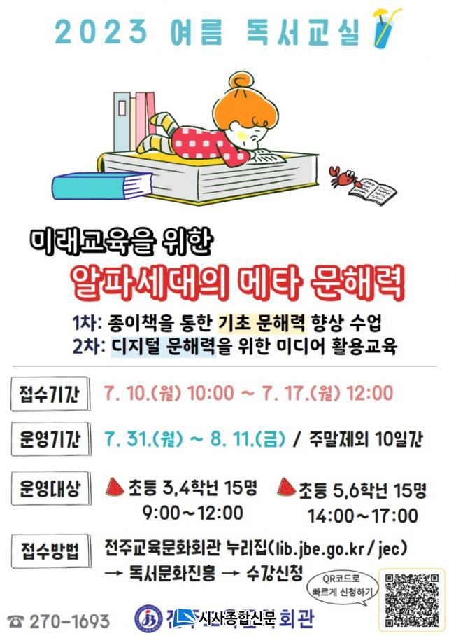 Âü°¡¸¦ Èñ¸ÁÇÏ´Â »ç¶÷Àº ÀüÁÖ±³À°¹®Èȸ°ü ´©¸®Áý(https://lib.jbe.go.kr/jec)¿¡¼ 7¿ù 10ÀÏ ¿ÀÀü 10½ÃºÎÅÍ 17ÀÏ(¼ö) ¿ÀÈÄ 12½Ã±îÁö ½ÅûÇÏ¸é µÇ°í Á¢¼ö¼øÀ¸·Î ¸¶°¨ÇÑ´Ù. ±âŸ ÀÚ¼¼ÇÑ »çÇ×Àº ÀüÁÖ±³À°¹®Èȸ°ü ±³À°¹®È°ú(063-270-1693)·Î ¹®ÀÇÇÏ¸é µÈ´Ù.