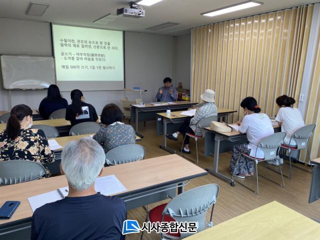 [½Ã»çÁ¾ÇսŹ® = °í¼º¹Î ±âÀÚ] ÇѼöÇ®µµ¼°üÀº Áö¿ªÁֹε鿡°Ô ±Û¾²±âÀÇ Áñ°Å¿òÀ» °æÇèÇÏ°Ô Çϰí Àι®ÇÐÀû ¼Ò¾çÀ» ÁõÁø½ÃŰ´Â °è±â¸¦ ¸¶·ÃÇϰíÀÚ¡®ÇѼöÇ® ¼öÇÊ Ã¢ÀÛ ±³½Ç¡¯À» 7¿ù 8ÀÏ(Åä) 5½Ã µµ¼°ü Æò»ý±³À°½Ç¿¡¼ °³°Çß´Ù.