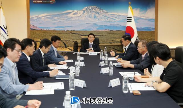 [½Ã»çÁ¾ÇսŹ® = °í¼º¹Î ±âÀÚ] Á¦ÁÖÆ¯º°ÀÚÄ¡µµ´Â 2025³â ¾Æ½Ã¾ÆÅÂÆò¾ç °æÁ¦Çù·Âü(Asia-Pacific Economic Cooperation, ÀÌÇÏ APEC) Á¤»óȸÀÇ Á¦ÁÖ À¯Ä¡¸¦ À§ÇÑ Àü·«¹æ¾ÈÀ» ³íÀÇÇϱâ À§ÇØ 11ÀÏ ¿ÀÀü 9½Ã 30ºÐ Á¦ÁÖµµÃ»¿¡¼ Á¦ÁÖÀ¯Ä¡ ÃßÁøÁغñ´Ü ȸÀǸ¦ °³ÃÖÇß´Ù.