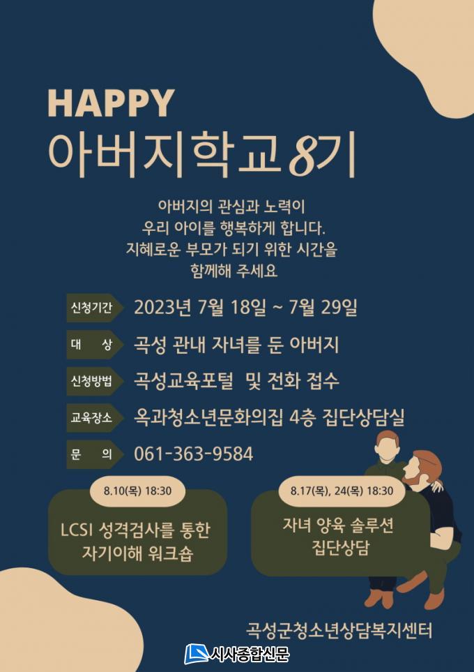 ¡®ÇູÇÑ ¾Æ¹öÁö Çб³¡¯´Â Áö¿ª ³» ÀÚ³àµé µÐ ¾Æ¹öÁö 20¸íÀ» ´ë»óÀ¸·Î ¿î¿µµÈ´Ù. °ÀÇ´Â ¿À´Â 8¿ù 10ÀϺÎÅÍ 24ÀϱîÁö ¸ÅÁÖ ¸ñ¿äÀÏ ¿ÀÈÄ 6½Ã 30ºÐ¿¡ °î¼º±ºÃ»¼Ò³â»ó´ãº¹Áö¼¾ÅÍ 4Ãþ Áý´Ü»ó´ã½Ç¿¡¼ ÁøÇàµÈ´Ù.