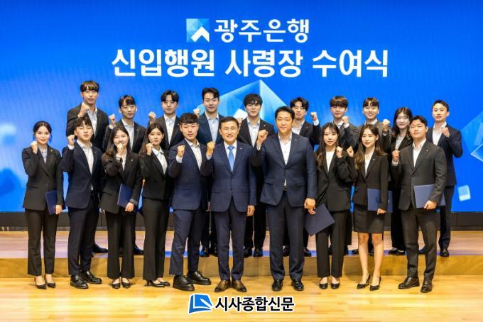 °íº´ÀÏ ±¤ÁÖÀºÇàÀåÀº ÁøÁ¤ÇÑ ÀºÇà¿øÀ¸·Î °Åµì³ª±â À§ÇÑ ±ä ¿©Á¤¿¡ ¼º½ÇÈ÷ ÀÓÇÑ ½ÅÀÔÇà¿øµéÀ» °Ý·ÁÇϸç ÇѸí ÇÑ¸í¿¡°Ô ÈÖÀåÀ» ´Þ¾ÆÁÖ¾ú´Ù. ´õºÒ¾î ¡°¸¶À½¿¡¼ ¿ì·¯³ª´Â Ä£ÀýÇÔÀ¸·Î ½Å·Ú¿Í °¨µ¿À» ÁÖ´Â Á¤Á÷ÇÑ ÀºÇà¿øÀÌ µÇ±â¸¦ ¹Ù¶õ´Ù¡±¸ç, ¡°Áö¿ª¹Î°ú °í°´¿¡°Ô ¼öÁØ ³ôÀº ±ÝÀ¶¼ºñ½º¸¦ Á¦°øÇÒ ¼ö ÀÖµµ·Ï ²ÙÁØÇÑ ÀÚ±â°è¹ßÀ» ÅëÇØ ÇÁ·Î ÀºÇà¿øÀ¸·Î ¼ºÀåÇÒ ¼ö ÀÖ±æ ¹Ù¶õ´Ù¡±´Â ¸Þ½ÃÁö¸¦ ÀüÇß´Ù.