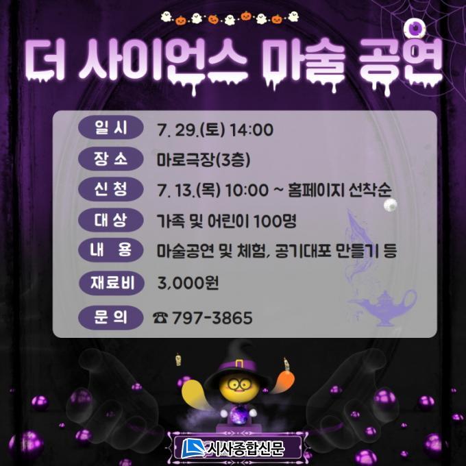 À̹ø °ø¿¬Àº ½Å±âÇÑ ¸¶¼úÀ» °úÇÐÀû ¿ø¸®·Î ÀçÇØ¼®ÇÑ Ã¢ÀÇ¡¤À¶ÇÕÇü üÇè °ø¿¬À¸·Î, ¸¶¼ú ÆÛÆ÷¸Õ½º¿Í ÇÔ²² ½Å±âÇÑ °úÇнÇÇè¿¡ Á÷Á¢ Âü¿©Çغ½À¸·Î½á ¾ÆÀ̵éÀÌ °úÇп¡ È£±â½É°ú ¸Å·ÂÀ» ´À³¥ ¼ö ÀÖµµ·Ï ¸¶·ÃµÆ´Ù.