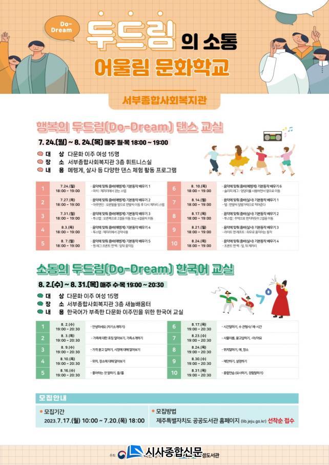 À̹ø µÎµå¸²ÀÇ ¼ÒÅë ¾î¿ï¸² ¹®ÈÇб³´Â ¼ºÎÁ¾ÇÕ»çȸº¹Áö°ü 3Ãþ¿¡¼ ÁøÇàµÇ¸ç, ¡®ÇູÀÇ µÎµå¸² ´í½º±³½Ç¡¯°ú ¡®¼ÒÅëÀÇ µÎµå¸² Çѱ¹¾î±³½Ç¡¯ ÇÁ·Î±×·¥¿¡ °¢°¢ 15¸í¾¿ ¼±Âø¼ø ¸ðÁýÇÑ´Ù.