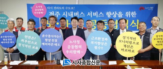 ½Ã´Â 18ÀÏ Æòȵ¿ ½Ã³»¹ö½º ȸÂ÷Áö¿¡¼ ¿ì¹ü±â ÀüÁÖ½ÃÀå°ú ¹Ú¼±Àü ÀüÁÖ½ÃÀÇȸ µµ½Ã°Ç¼³À§¿øÈ¸ À§¿øÀå, ±èÁøÅ ÀüÁֽó»¹ö½º°øµ¿°ü¸®À§¿øÈ¸ À§¿øÀå, ÃÖ»ó¼ö Àü±¹ °ø°ø¿î¼ö³ëµ¿Á¶ÇÕ ÀüºÏÁö¿ª ¹ö½ºÁöºÎÀå, ÀÓÇüºó Àü±¹ÀÚµ¿Â÷³ëµ¿Á¶ÇÕ¿¬¸Í ÀüºÏÁö¿ªÀ§¿øÀå, 5°³ ¿î¼öȸ»ç ´ëÇ¥ µî 20¿© ¸íÀÌ Âü¼®ÇÑ °¡¿îµ¥ ¡®ÀüÁֽó»¹ö½º ¼ºñ½º Çâ»óÀ» À§ÇÑ ³ë¡¤»ç¡¤Á¤ °øµ¿Çù·Â Çà»ç¡¯¸¦ °¡Á³´Ù.
