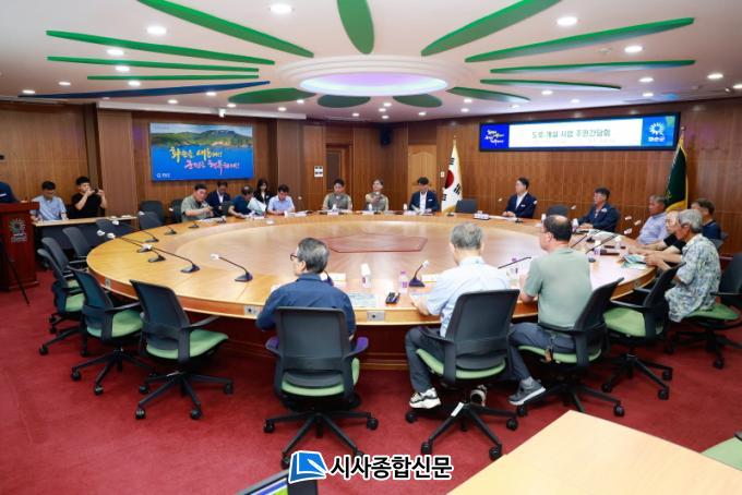 À̳¯ °£´ãȸ¿¡¼´Â ¸¶À»Áֹΰú ¹«µî»ê±¹¸³°ø¿øµ¿ºÎ»ç¹«¼Ò ¾÷¹«°ü°èÀÚ µî 17¿© ¸íÀÌ Âü¼®ÇÏ¿© ¹«µî»ê±¹¸³°ø¿øµ¿ºÎ»ç¹«¼ÒÀÇ °ø¿ø°èȹ ¼³¸í°ú ÁßÁö¸¶À» µµ·Î°³¼³»ç¾÷ ³ë¼±(¾È) °ÇÀ» Åä·ÐÇϰí ÁֹΠÀǰßÀ» ûÃëÇÏ¿´´Ù.