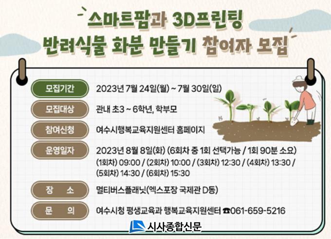 Âü¿©¸¦ Èñ¸ÁÇÏ´Â ½Ã¹ÎÀº ¿À´Â 24ÀϺÎÅÍ 30ÀϱîÁö ¿©¼ö½ÃÇູ±³À°Áö¿ø¼¾ÅÍ È¨ÆäÀÌÁö(www.yeosu.go.kr/edu)¿¡¼ ½ÅûÇÒ ¼ö ÀÖ´Ù. ±âŸ ÀÚ¼¼ÇÑ ³»¿ëÀº ¿©¼ö½Ãû Æò»ý±³À°°ú(¢Ï061-659-5216)·Î ¹®ÀÇÇÏ¸é µÈ´Ù.