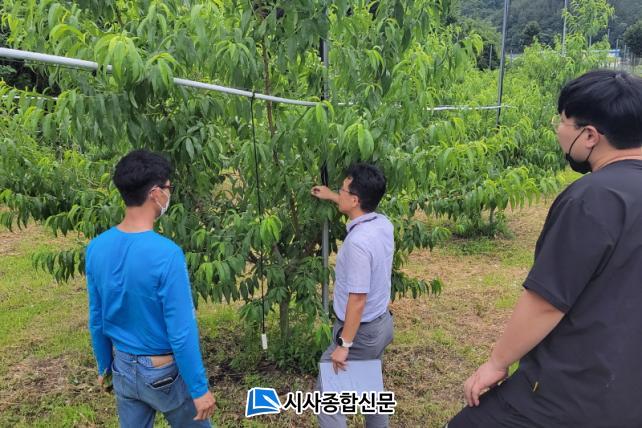 À帶 ÀÌÈÄ °í¿Â Çö»óÀÌ Áö¼ÓµÇ¸é ä¼Ò¿Í °ú¼ö µî ¿ø¿¹ÀÛ¹°¿¡¼´Â º´ÇØÃæÀÌ ¹ß»ýÇÏ°í ¼ö·®ÀÌ °¨¼ÒÇÏ´Â µîÀÇ ÇÇÇØ°¡ ÀÕµû¸£´Âµ¥ µû¸¥ Á¶Ä¡·Î, ¹«ÁÖ±º³ó¾÷±â¼ú¼¾ÅÍ ³óÃÌÁöµµ»çµé(7°³ ¹Ý 8¸í)ÀÌ ¼ö½Ã·Î ÇöÀå¿¡ ³ª°¡ ³ó¾÷Àεé°ú °ü·Ã ³»¿ëµéÀ» °øÀ¯Çϰí ÀÖ´Ù.