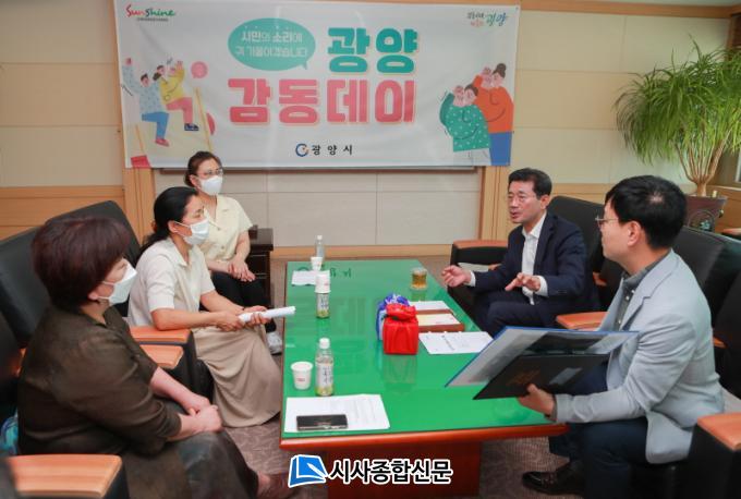 Á¤ÀÎÈ ±¤¾ç½ÃÀåÀº ¡°ÇöÀå¿¡ Á÷Á¢ ³ª°¡ ½Ã¹ÎµéÀÇ ¸ñ¼Ò¸®¸¦ µè°íÀÚ ³ë·ÂÇÏÁö¸¸ ¹Ìó ¹ß±æÀÌ ¹ÌÄ¡Áö ¸øÇÑ ºÎºÐÀÌ ÀÖ¾î, ½Ã¹Î ´©±¸³ª ã¾Æ¿Í¼ ¸ñ¼Ò¸®¸¦ ³¾ ¼ö ÀÖ´Â ÀÚ¸®¸¦ ¸¶·ÃÇÏ´Â °ÍÀÌ ¡®±¤¾ç °¨µ¿µ¥ÀÌ¡¯ÀÇ ÃëÁöÀÌ´Ù¡±¸ç ¡°½Ã¹Î ¿©·¯ºÐÀÇ ¸ñ¼Ò¸®¸¦ µé·ÁÁÖ½Ã¸é ¾î¶°ÇÑ ÀÛÀº ¹®Á¦¶óµµ ¼ÒȦÈ÷ ÇÏÁö ¾Ê°í ÇØ°áÇϱâ À§ÇØ ÃÖ¼±À» ´ÙÇϰڴ١±°í ¸»Çß´Ù.