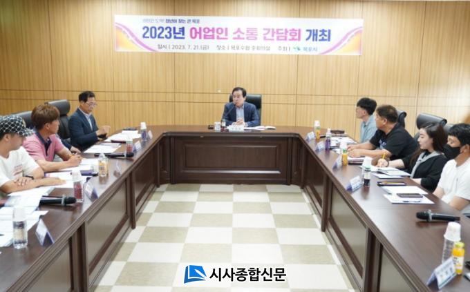 [½Ã»çÁ¾ÇսŹ® = ¿À½ÂÅà ±âÀÚ] ¹ÚÈ«·ü ¸ñÆ÷½ÃÀåÀÌ 21ÀÏ ¸ñÆ÷¼öÇù¿¡¼ ¾î¾÷ÀÎ ¼ÒÅë°£´ãȸ¸¦ ¿°í ¾î¾÷ÀεéÀÇ ¾Ö·Î»çÇ× µîÀ» ûÃëÇÏ°í ¸ñÆ÷½Ã Çö¾È¿¡ ´ëÇÑ ÀǰßÀ» ±³È¯Çß´Ù.