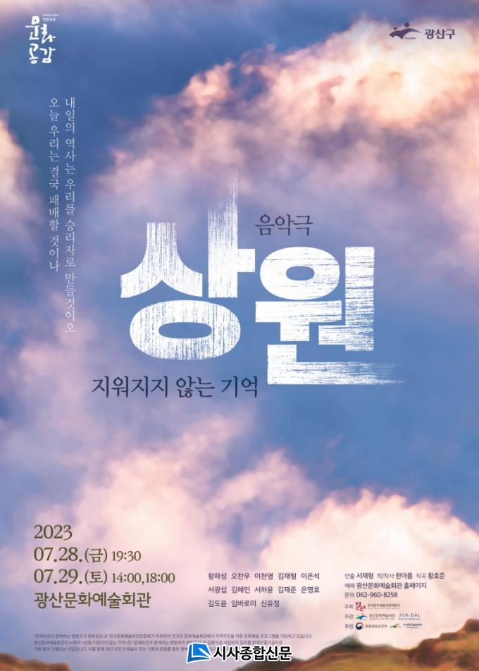 | ±¤ÁÖ±¤¿ª½Ã ±¤»ê±¸, 5‧18 Áö¿öÁöÁö ¾Ê´Â ±â¾ï À½¾Ç±Ø ¡®»ó¿ø¡¯ °ø¿¬ °³ÃÖ 28~29ÀÏ ±¤»ê¹®È¿¹¼úȸ°ü ¼ÀçÇü ¿¬Ãâ À½¾Ç±Ø ¡®»ó¿ø¡¯ÀÌ ¿À´Â 28ÀÏ, 29ÀÏ ±¤ÁÖ¸¦ ã´Â´Ù. |