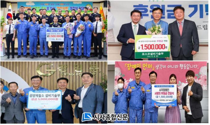 ÇÑÆí, ±¤¾çÁ¦Ã¶¼Ò´Â ȯ°æÀÇ ³¯À» ¸Â¾Æ Á÷¿øµéÀÇ ¹°Ç°À» ½Ê½ÃÀÏ¹Ý ¸ð¾Æ ÆÇ¸ÅÇÑ ¼öÀÍ±Ý Àü¾×À» Áö¿ª»çȸ¿¡ Àü´ÞÇϰí, Áö¿ª »çȸº¹Áö½Ã¼³ ¹× ¾Æµ¿½Ã¼³¿¡ À̵¿¿ë Â÷·®À» Àü´ÞÇÏ´Â µî Áö¿ª»çȸ¿Í »ó»ý¡¤°øÁ¸Çϱâ À§ÇØ ±â¾÷°ú »çȸ°¡ ÇÔ²² ¹ßÀüÇÏ´Â ¸ðµ¨À» Á¦½ÃÇÏ´Â Community with POSCO(Áö¿ª»çȸ¿Í ÇÔ²²Çϴ ȸ»ç) ½ÇÇöÀ» À§ÇØ Àû±Ø ³ë·Â ÁßÀÌ´Ù.