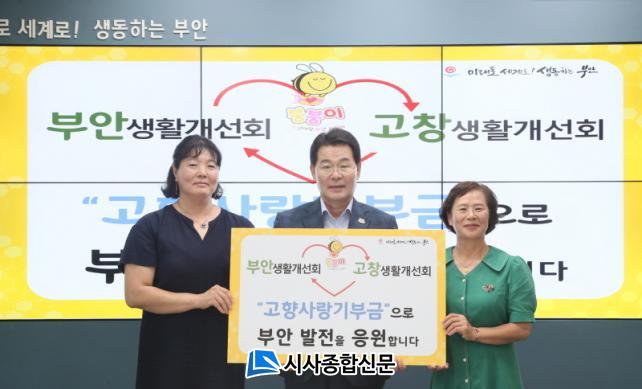 ¾ç Áö¿ªÀÇ »ýȰ°³¼±È¸¿øµéÀÌ °íÇâÀ» »ç¶ûÇÏ´Â ¸¶À½À» ¸ð¾Æ 150¸¸¿ø¾¿ »óÈ£ ±âºÎ±ÝÀ» Àü´ÞÇϰí Áö¿ª¹ßÀüÀ» ÀÀ¿øÇϱâ À§ÇØ ºÎ¾È±ºÃ»¿¡ ¸ðÀÎ »ýȰ°³¼±È¸¿øµé¿¡°Ô ±ÇÀÍÇö ±º¼ö´Â °Ý·Á¿Í °¨»ç¸¦ ¾Æ³¢Áö ¾Ê¾Ò´Ù.