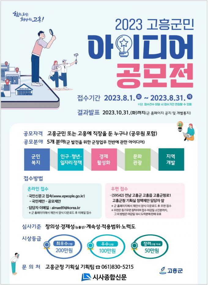 °ø¸ðÀü¿¡ ´ëÇÑ ±âŸ ÀÚ¼¼ÇÑ »çÇ×Àº °íÈﱺ ´©¸®Áý(ȨÆäÀÌÁö) °í½Ã¡¤°ø°í ¹× °íÈﱺû ±âȹ½Ç(¢Ï061-830-5215)À» ÅëÇØ È®ÀÎÇÒ ¼ö ÀÖ´Ù.