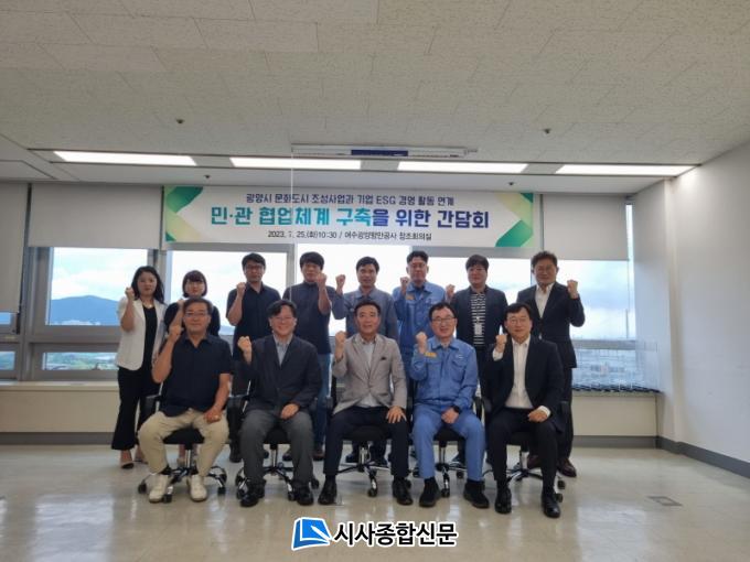 À̹ø °£´ãȸ´Â ±¤¾ç»ó°øÈ¸ÀǼÒ, POSCO ±¤¾çÁ¦Ã¶¼Ò, ¿©¼ö±¤¾çÇ׸¸°ø»ç, ±¤¾çÁ¦Ã¶¼ÒÇù·Â»çÇùÀÇȸ µî ±¤¾ç½ÃÀÇ ±â¾÷ ¹× ±â°ü(´Üü) °ü°èÀÚ 14¸íÀÌ Âü¼®ÇÑ °¡¿îµ¥ ±â¾÷ ESG °æ¿µÈ°µ¿°ú ±¤¾ç½Ã ¹®Èµµ½Ã Á¶¼º»ç¾÷ÀÇ ¿¬°è ¹æ¾È¿¡ ´ëÇØ ³íÀÇÇß´Ù.